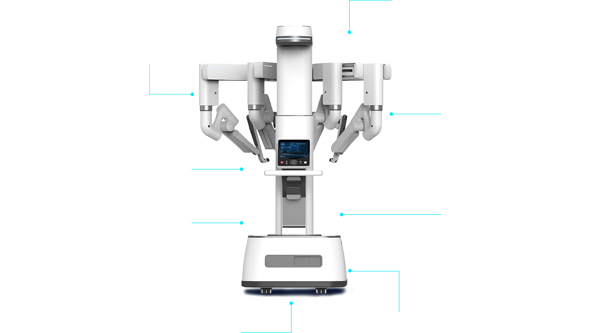 W pełni mobilny system i przegubowy boom - pozwala na dowolne ustawienie robota podczas zabiegu względem stołu operacyjnego.